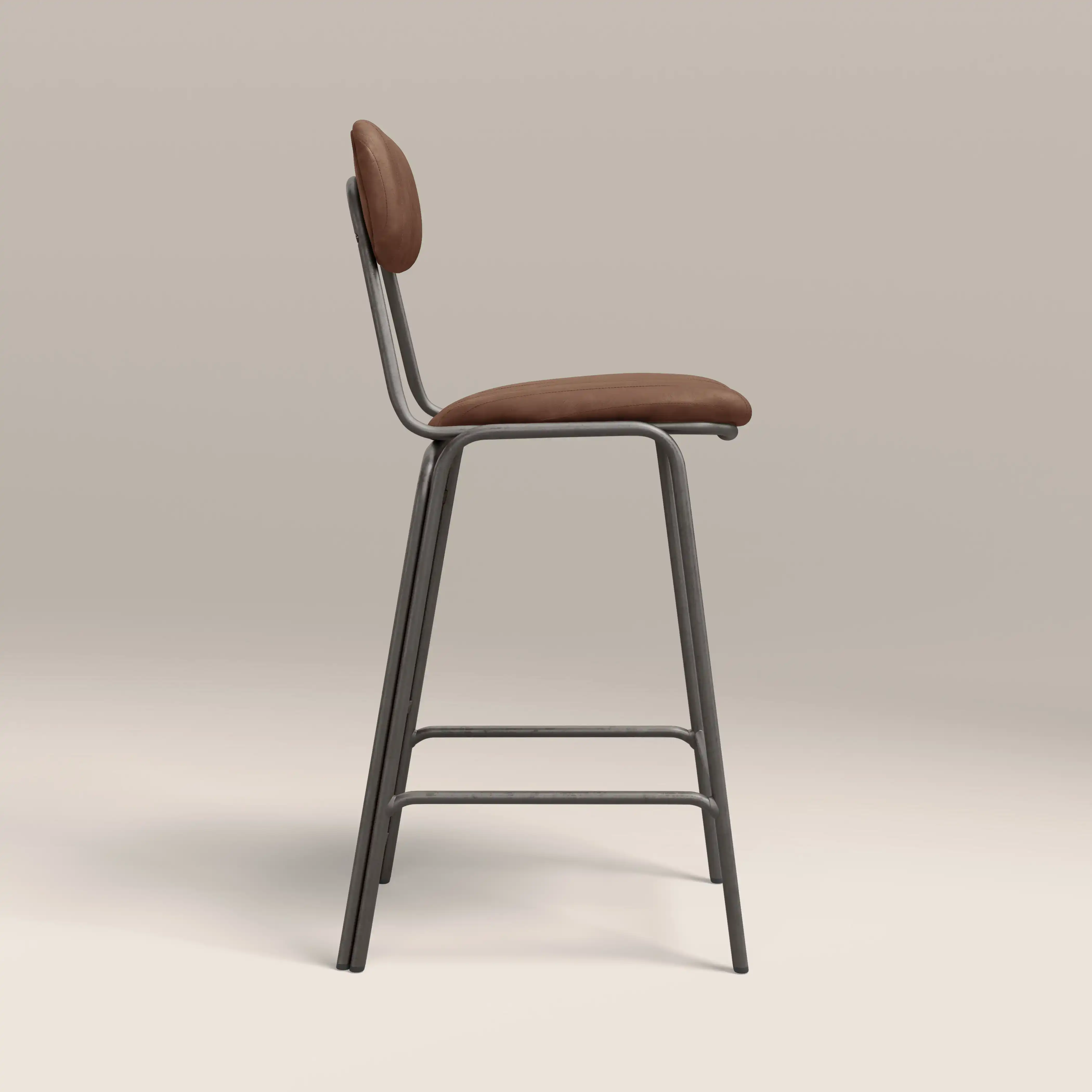 Boston Bar Stool With Backrest | Tan Faux Leather & Gunmetal
