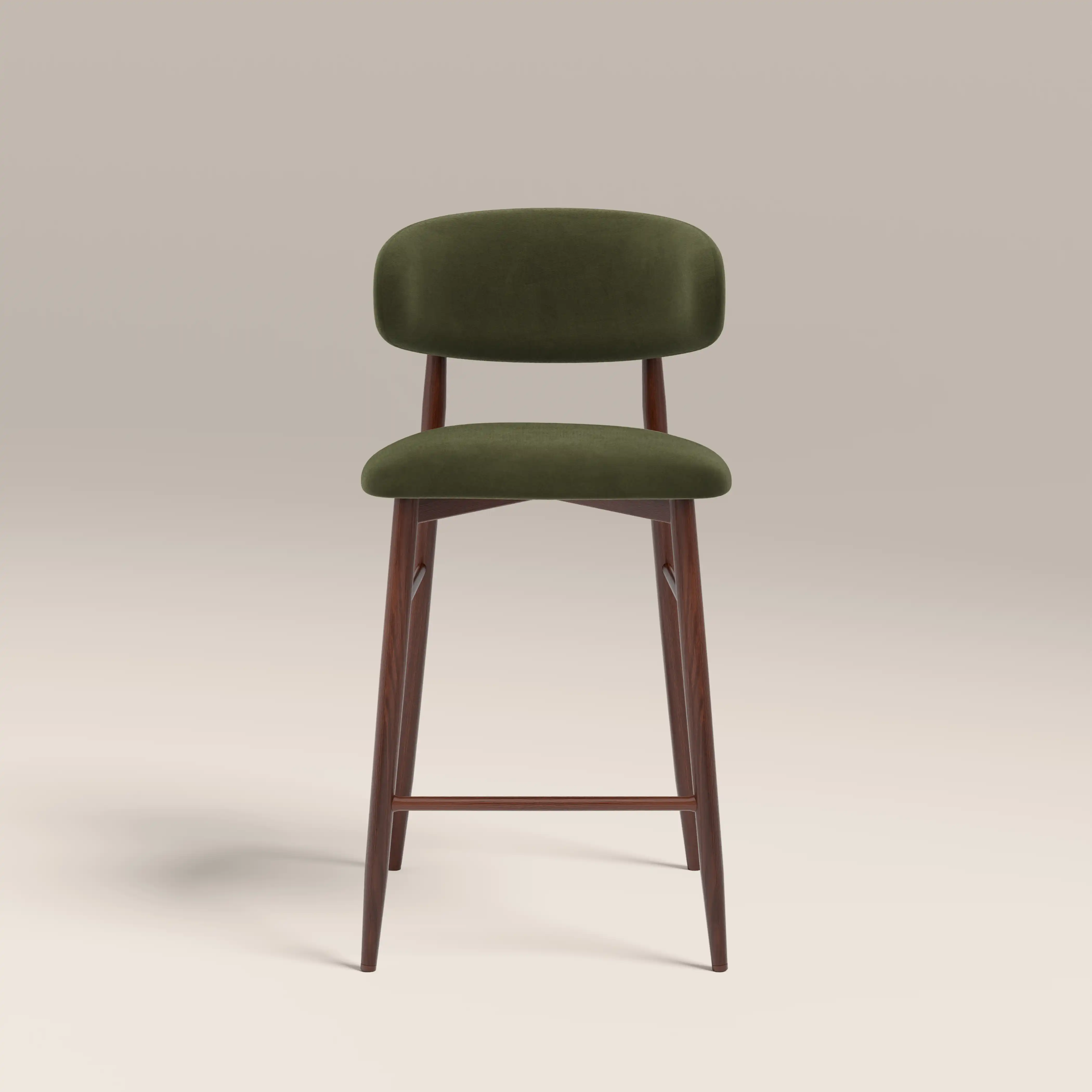 Halston Kitchen Stool | Olive Green Sustainable Velvet & Walnut