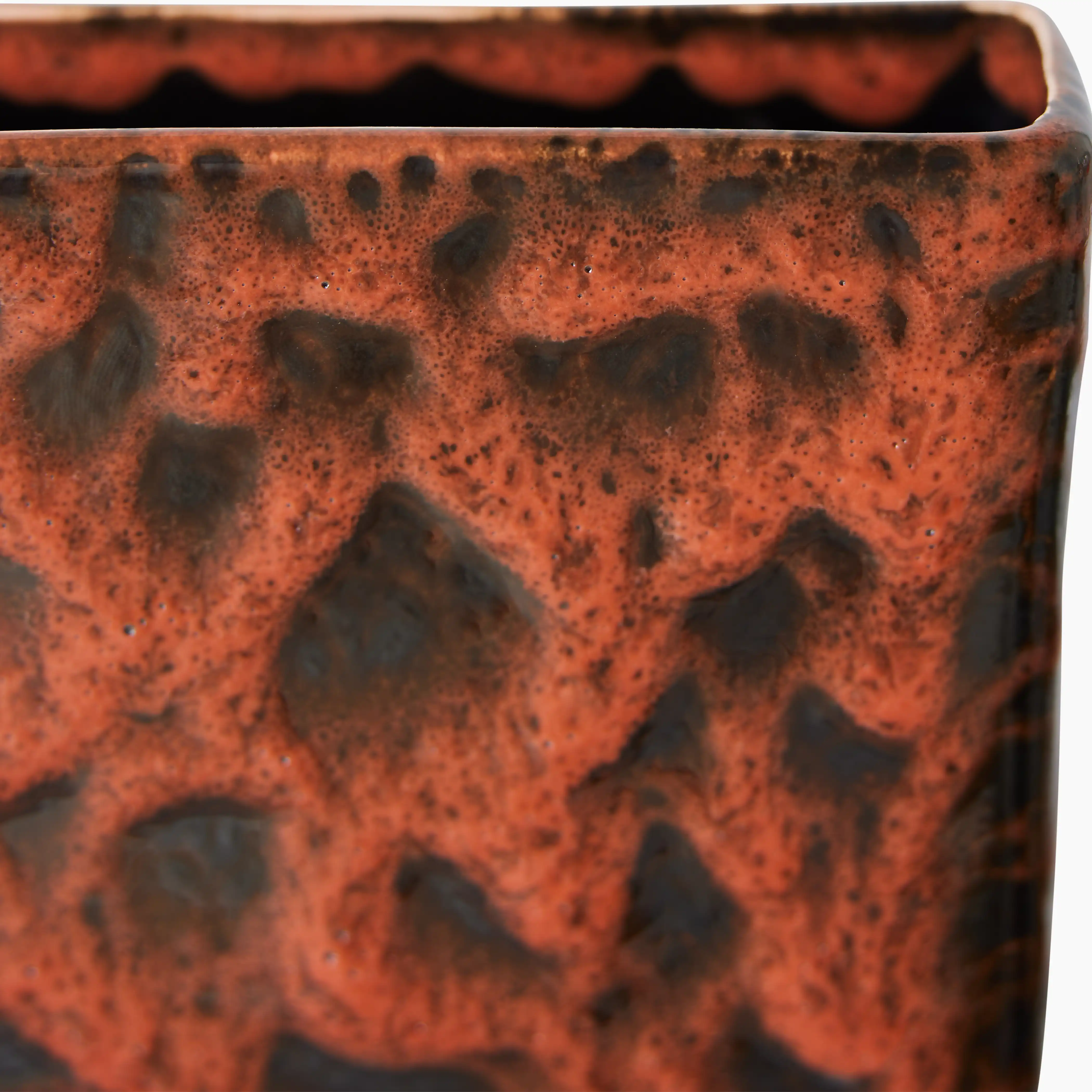 With the dual functionality of sculpture meets vase, this retro vase features Portuguese ceramics highlighted by a modern design. Featuring a coral red pattern in a glazed finish, the subtle cutout makes this piece a focal point.