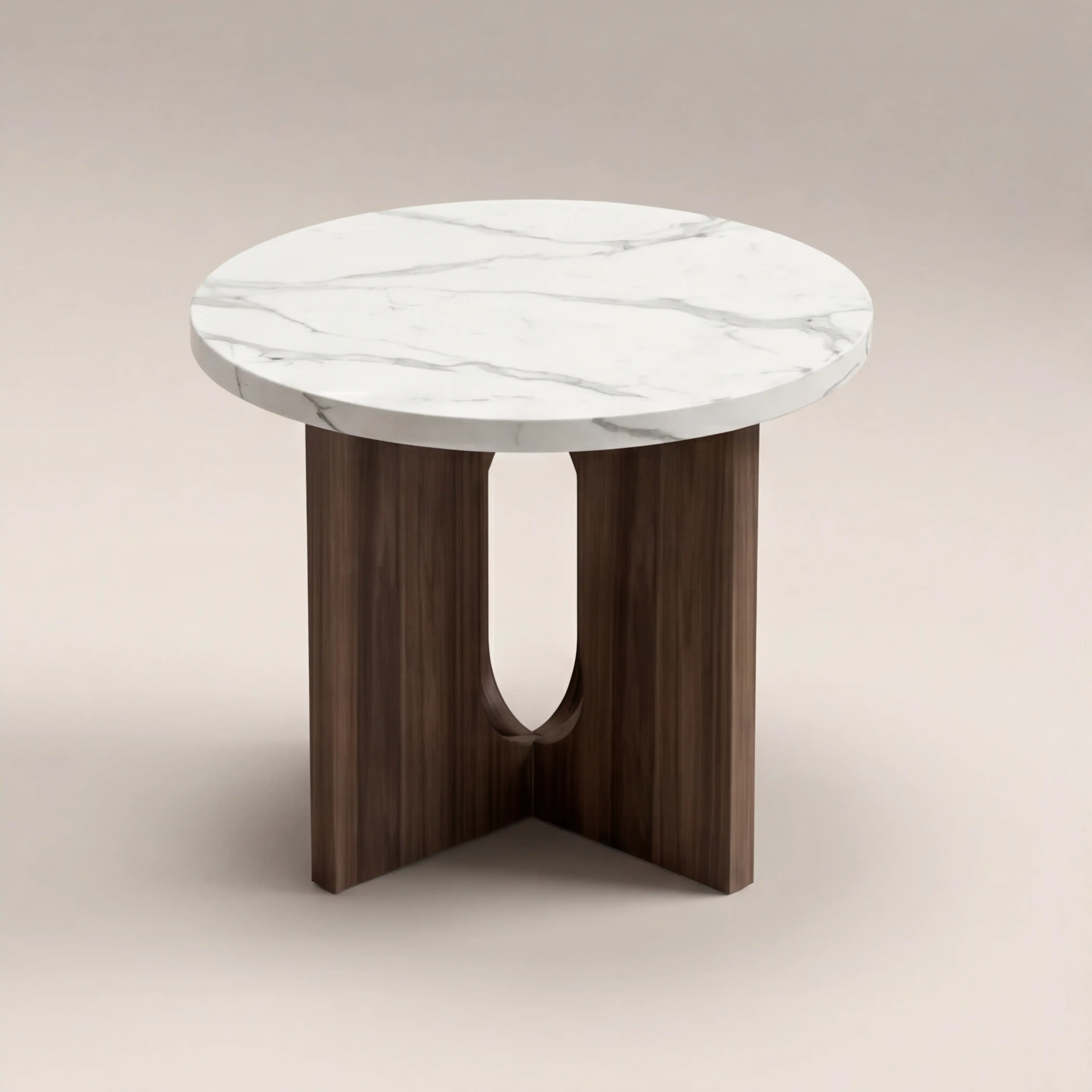 Moreton Round Side Table | White Marble Effect & Walnut