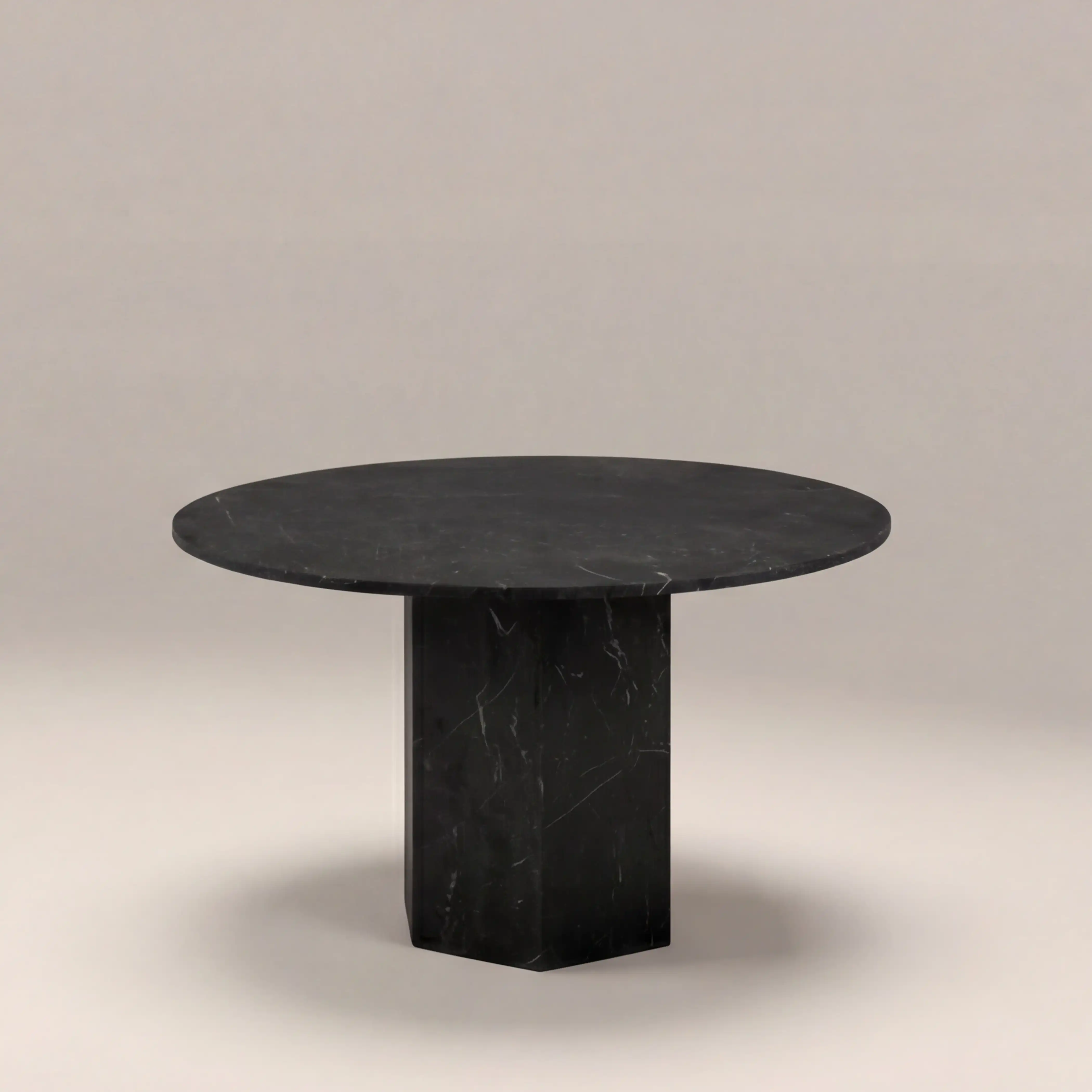 For an effortless fusion of Italian design and elegant functionality, the Naxos Marble Dining Table is crafted from Izmirlian black marble; the perfect statement piece with Roman and Ancient Greek influences. This natural stone dining table has a sculptural design that could easily be a work of art. The hexagonal pillar base and round top is suitable for up to 4 people, all in the same black marble for refined elevated style.