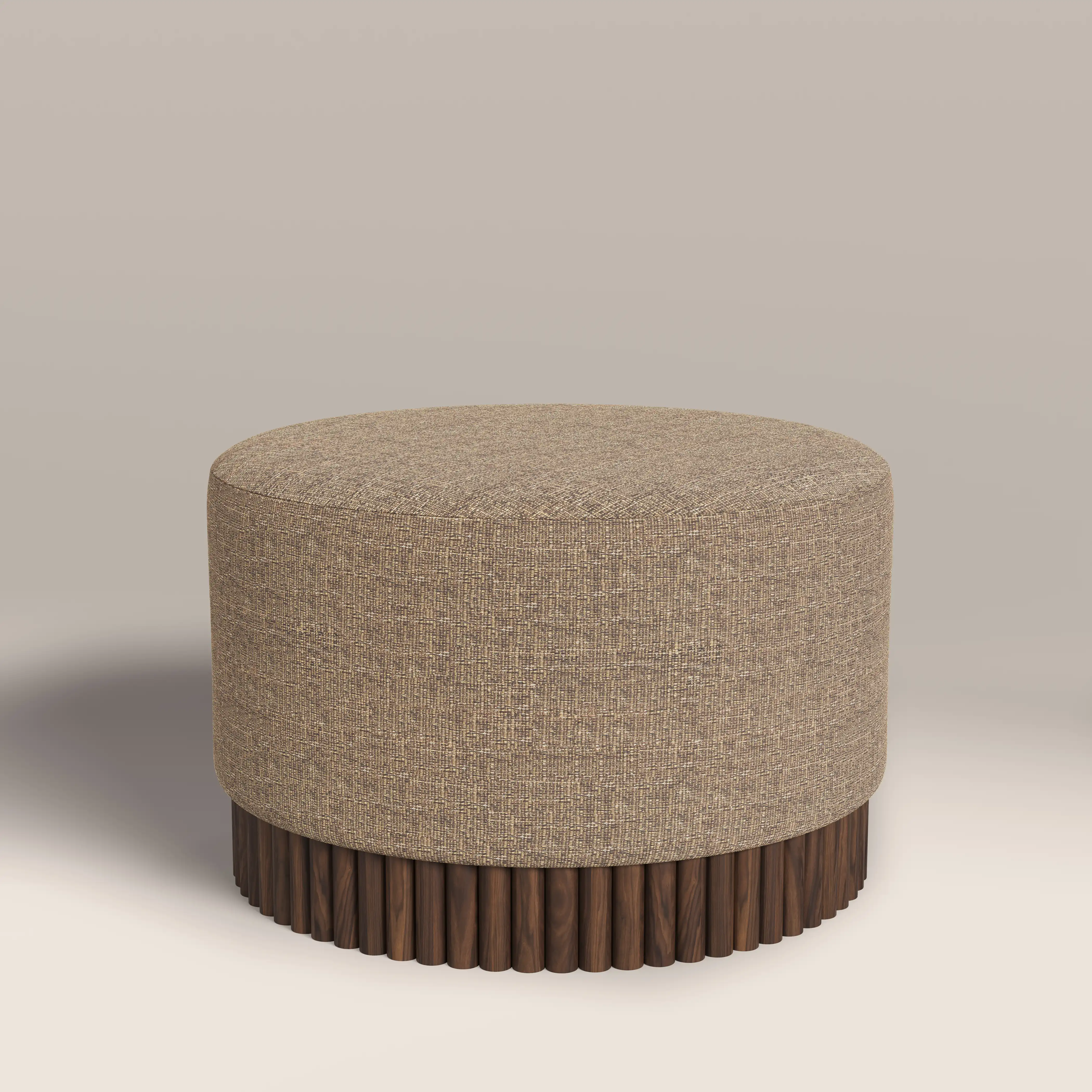 Oberon Footstool | Speckled Cappuccino Boucle & Walnut