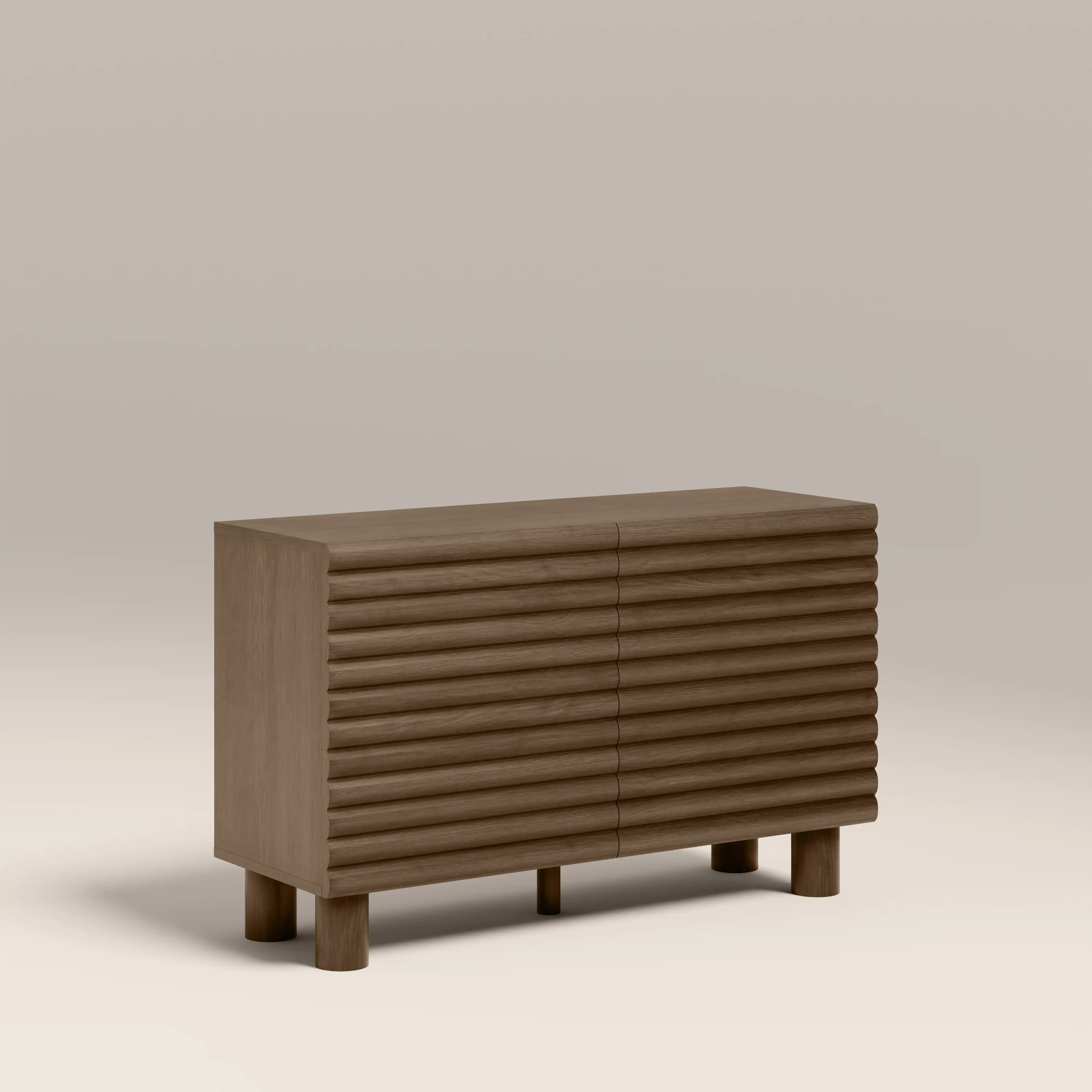 The Raphael 2 Door Sideboard gives serious statement with its ribbed doors finished in a dark wood finish. What's more, there is plenty of storage space with two doors revealing a spacious compartment with adjustable shelves.