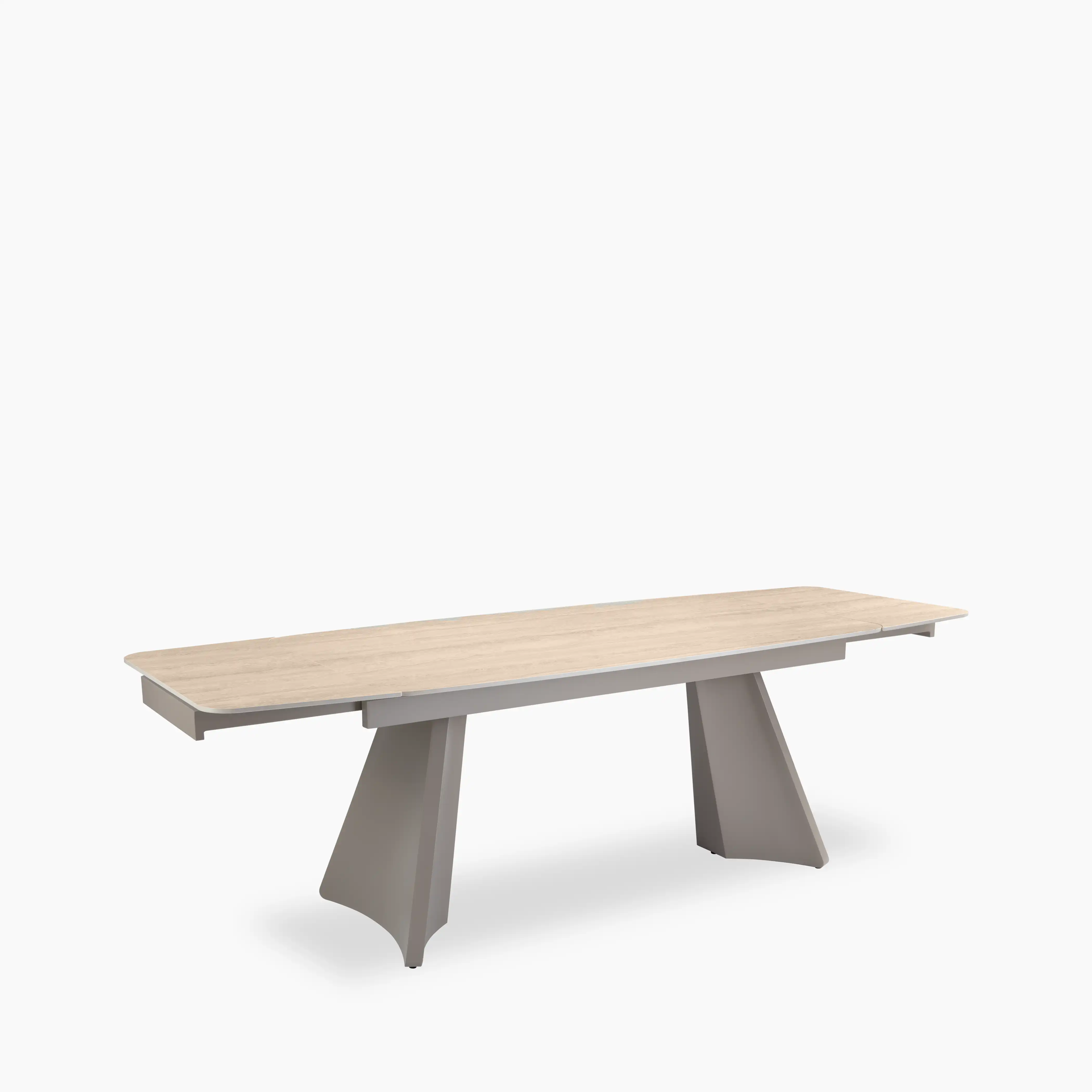 Renzo 6-10 Seat Rectangle Extendable Dining Table | Natural Travertine Effect Sintered Stone & Brown