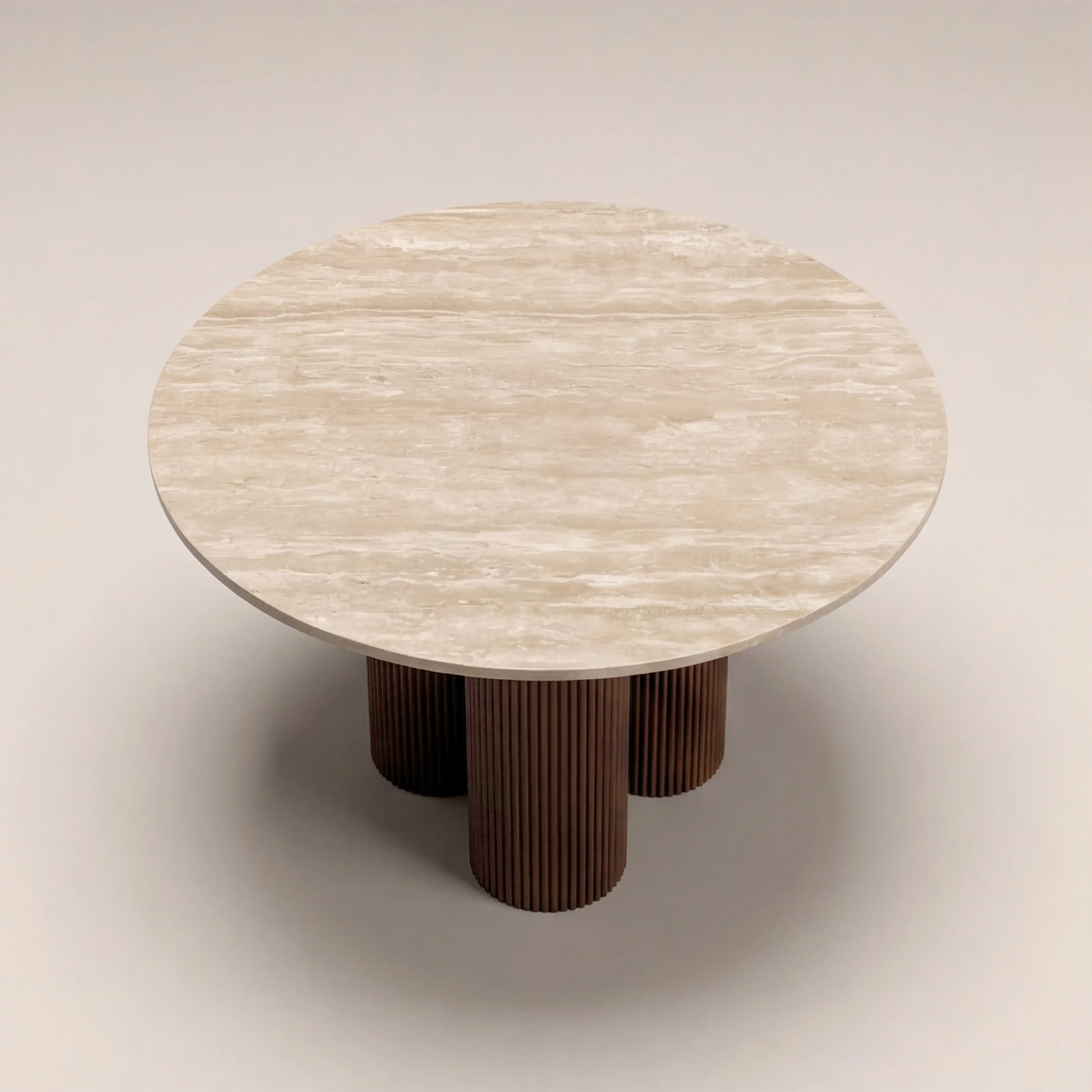 Skylar 4 Seat Round Dining Table | Natural Travertine & Walnut